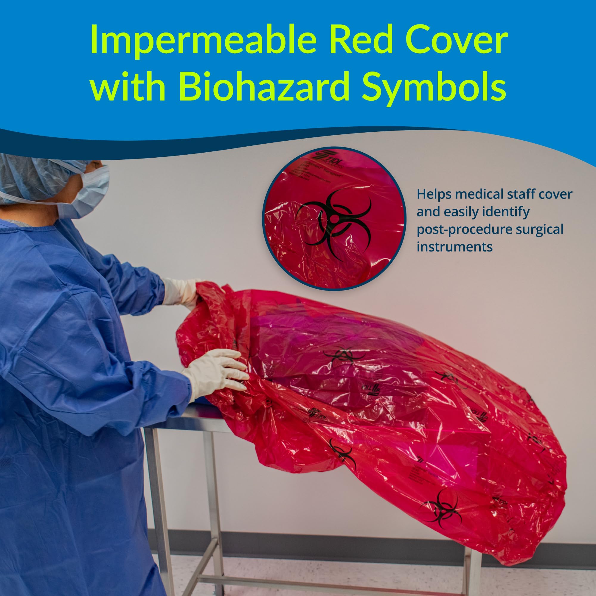 - Impermeable Red Cover with Biohazard Symbols: Helps medical staff cover and easily identify post-procedure surgical instruments