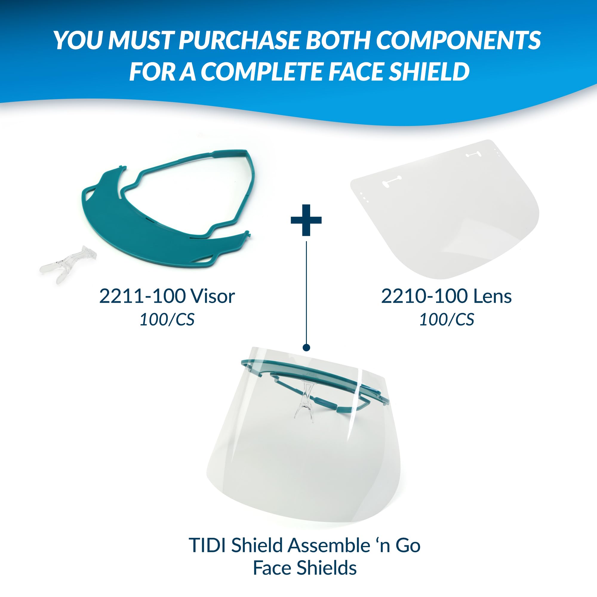 - EASY-TO-ASSEMBLE FACE SHIELDS: Purchase visors along with lenses (2210-100 or 2210-40) to assemble face shields for over-the-top, side, and front face protection during patient care